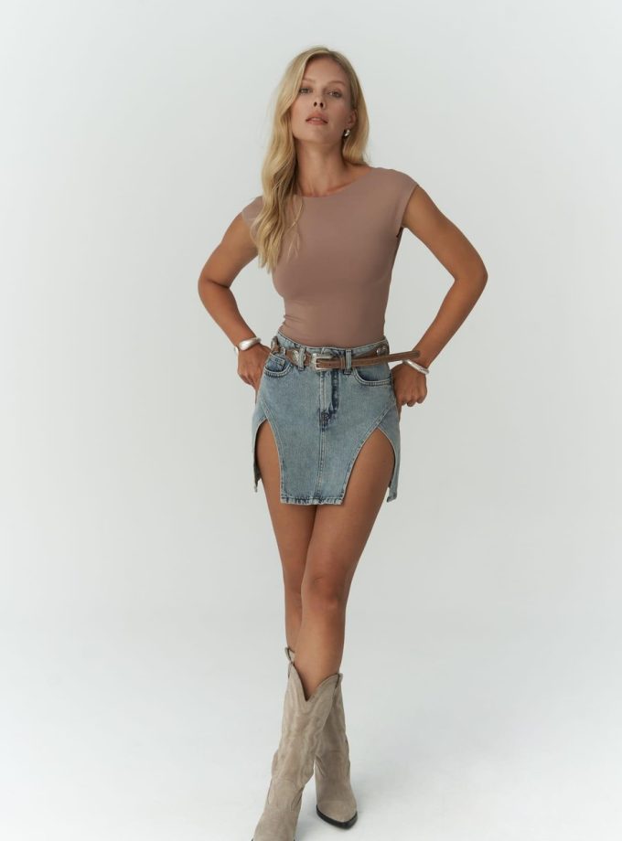 Marta Mini Denim Rok met Diepe Splitjes