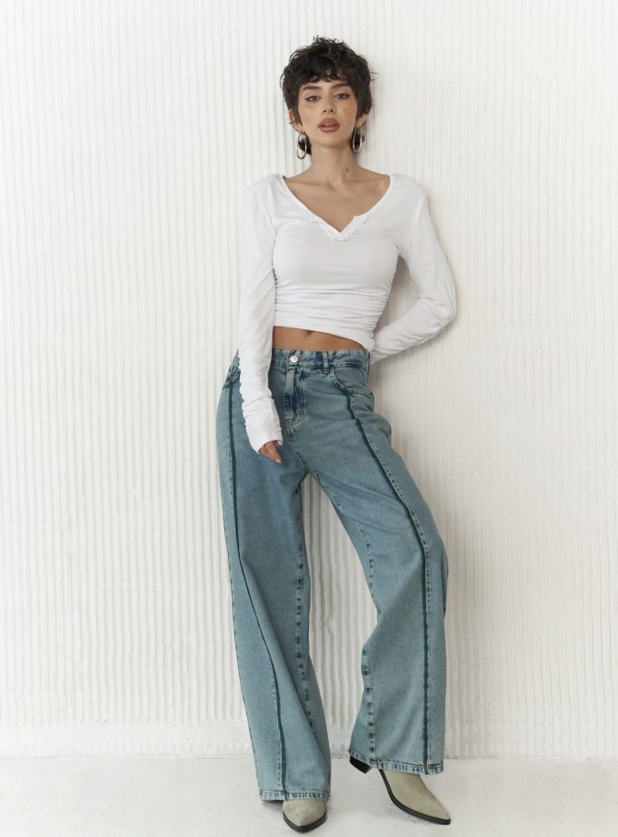 Maude Blauwe Jean Broek met Groene Streep