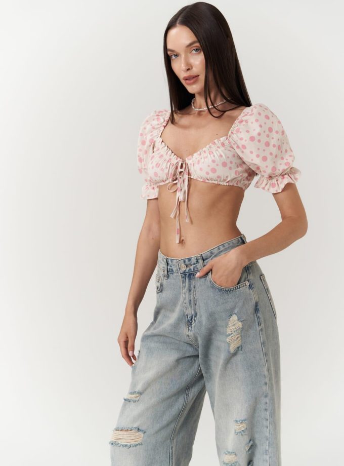 Bekijk verlanglijst“Lisa Roze Polka Dot Crop-Top” is toegevoegd aan uw verlanglijst