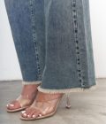Designerjeans met middelhoge taille, ritssluiting en knoopsluiting voor, zomen met franjes, vijf zakken en uitgesneden details op de zakken.