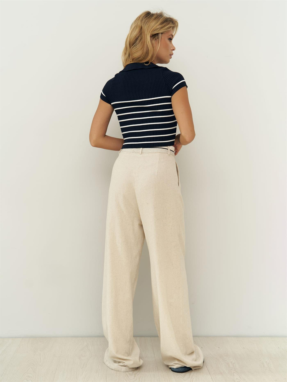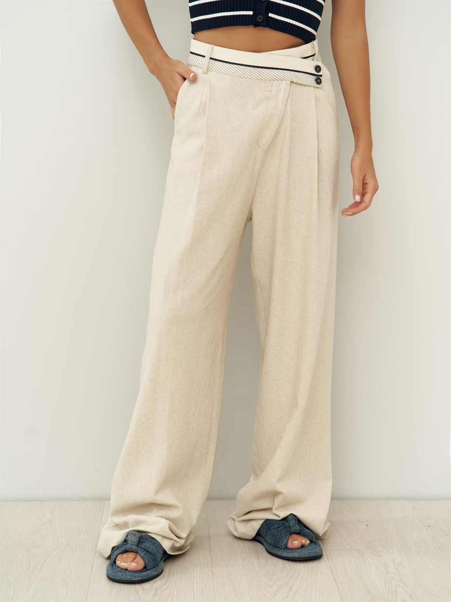 Venice Beige Linnen Broek met Omgekeerde Tailleband