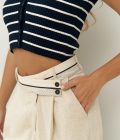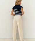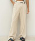 Home Shop DAMES Broek Venice Beige Linnen Broek met Omgekeerde Tailleband