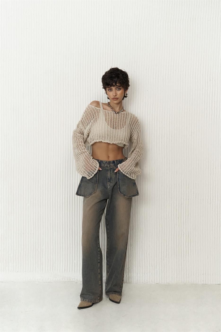 Home Shop DAMES Jeans Gatlin Dirty Grey Pocket Detail Jean Broek