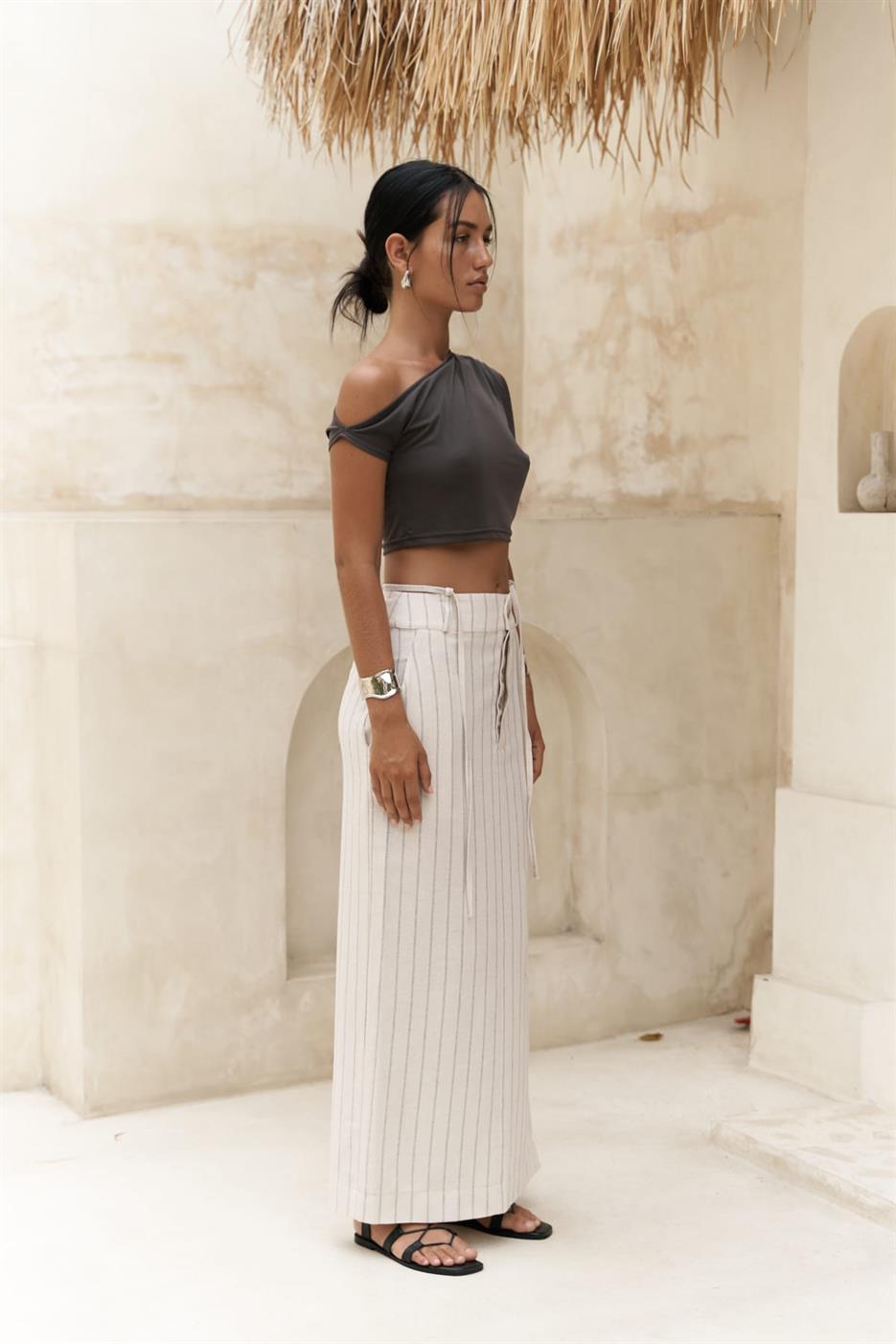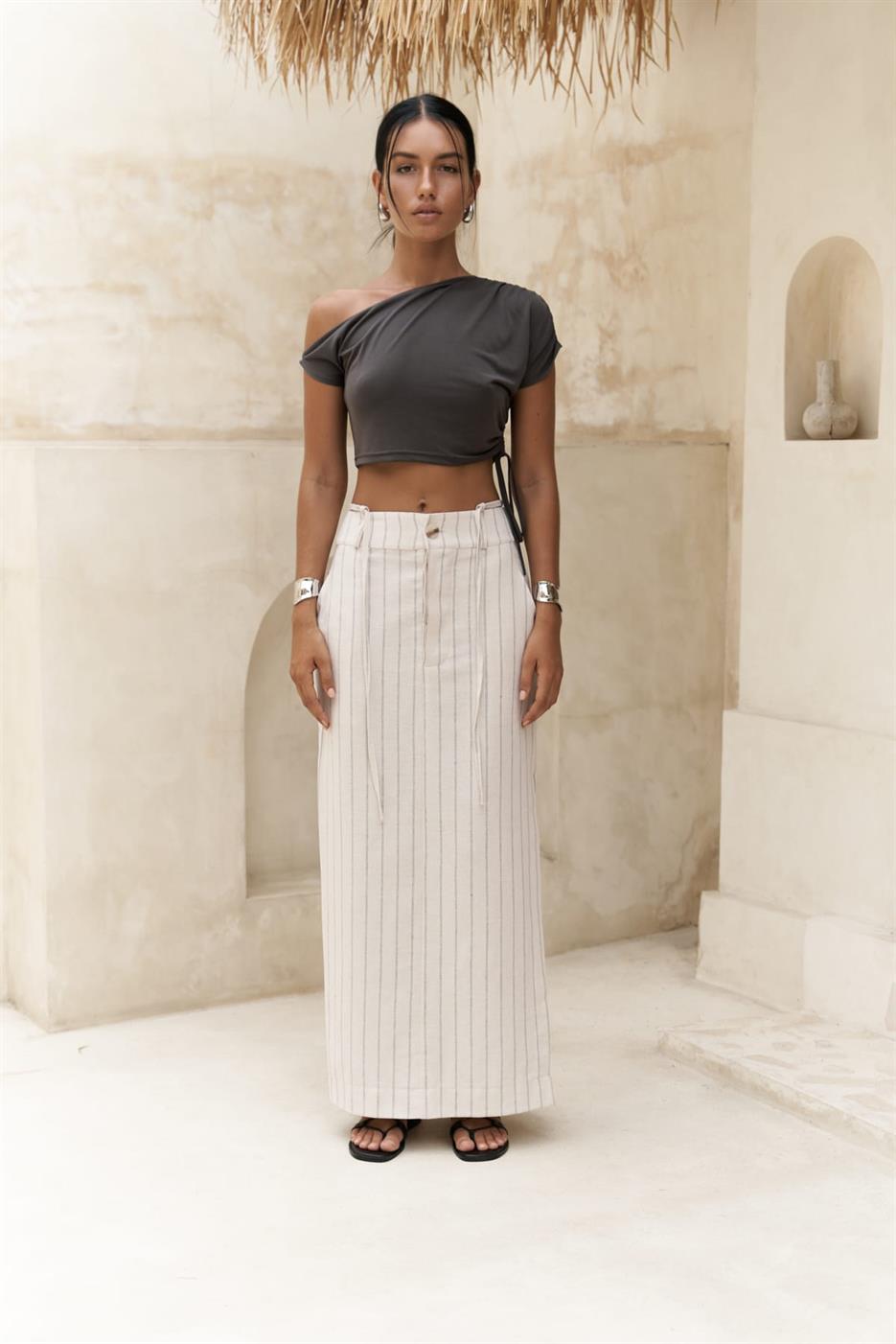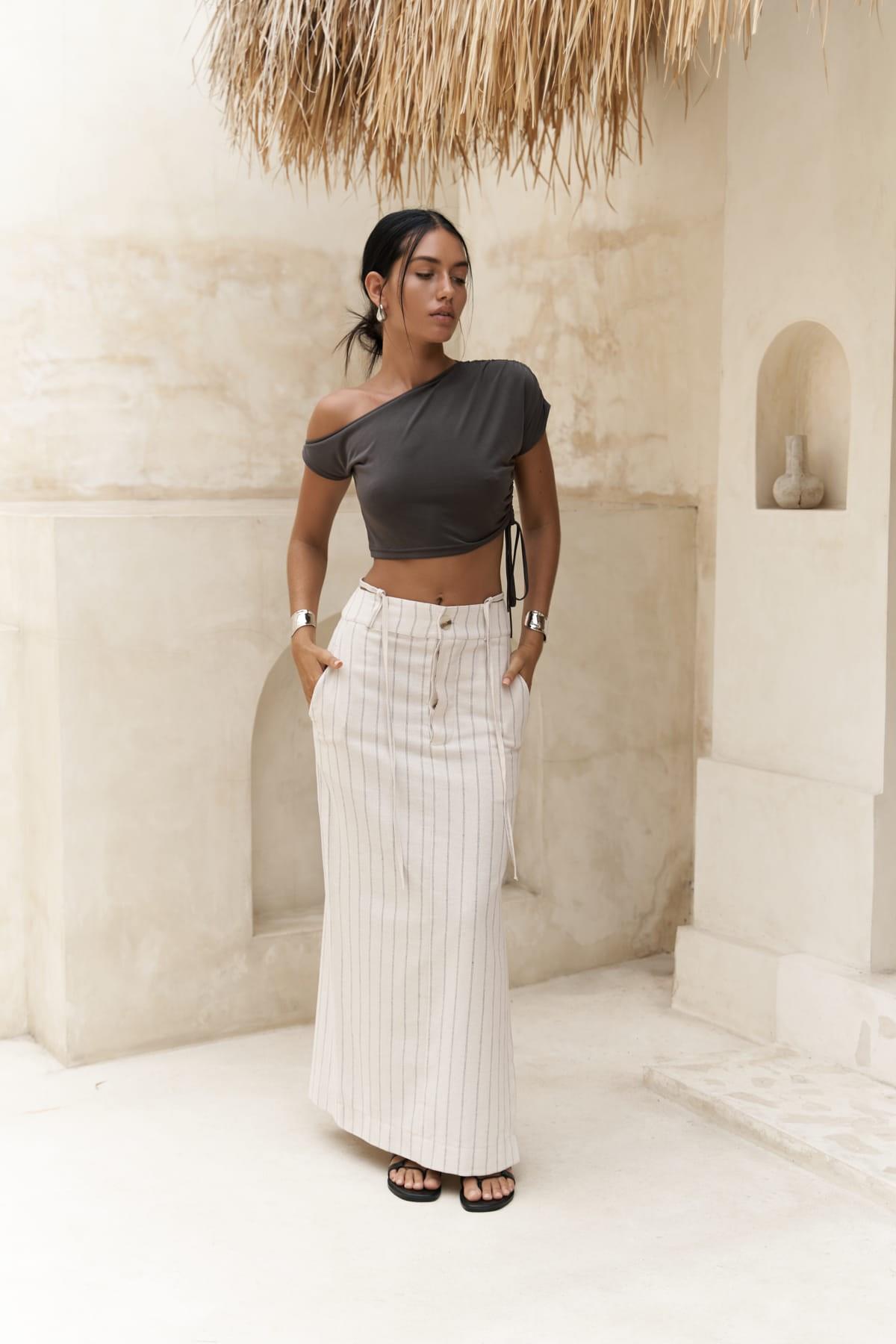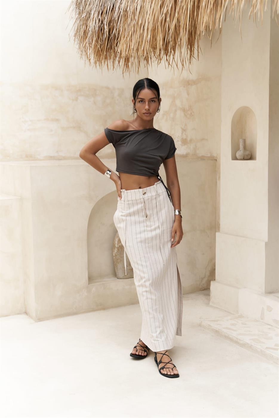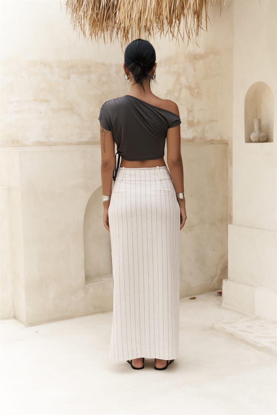 Home Shop DAMES Rok Arya Donkergrijs Gestreept Beige Rok