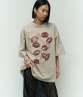 Lips Beige Oversised T-shirt