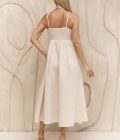 Geplooide midi-jurk met een diepe ronde halslijn, dunne schouderbandjes en een rechte zoomlijn.