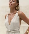 Home Shop DAMES Jurk Zendaya Beige Jurk met Gebreid Detail