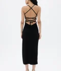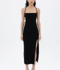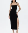 Zwarte Midi-Jurk met Bandjes en Splitdetail