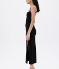 Home Shop DAMES Jurk Zwarte Midi-Jurk met Bandjes en Splitdetail